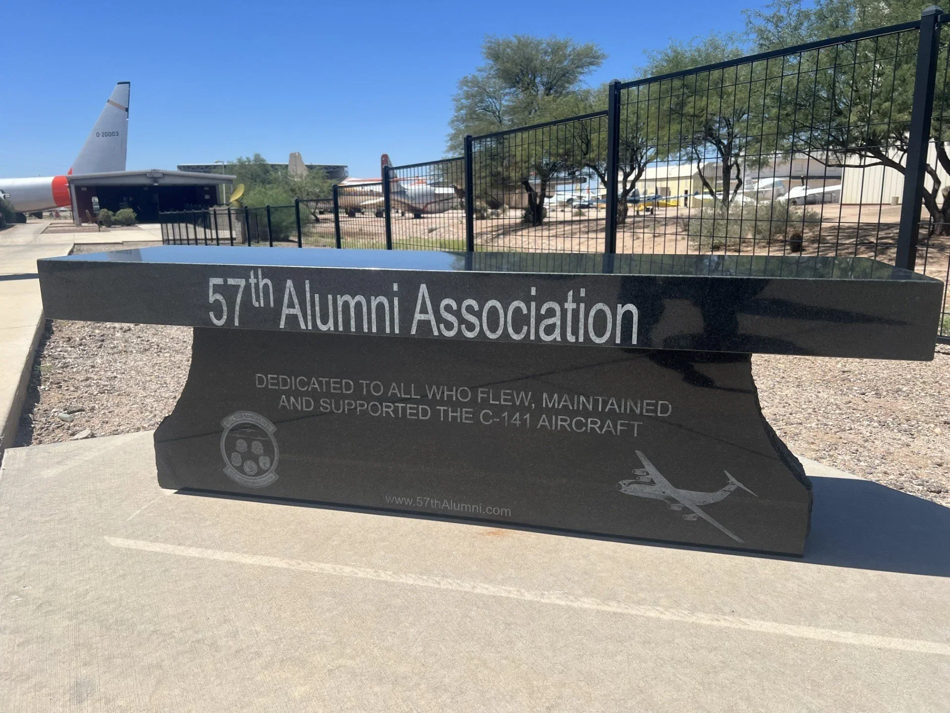We are Proud to present to you our latest achievement of our collaboration with 57th Alumi Association bench marker soon to be available to the public at Pima Air Museum located in Tucson Arizona!